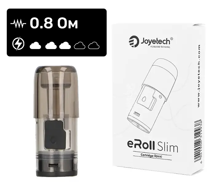 Картридж Joyetech Eroll Slim со встроенным испарителем разработан с акцентом на максимальную простоту в использовании - после, как приходит в негодность, элемент меняется полностью. Это упрощает эксплуатацию и снижает риск ошибок для неопытных пользователей. Внутри сетчатый нагреватель, равномерно распределяющий тепло.